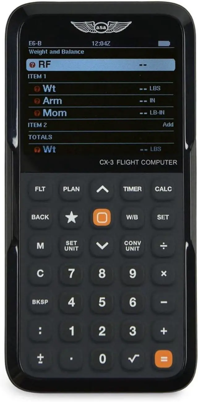A Favorite feature provides quick access to your most frequently used function and store the Aircraft Prole will let you store numbers specic to your aircraft. Package includes CX-3 Flight Computer, 4 AAA batteries, protective cover, and quick start guide.