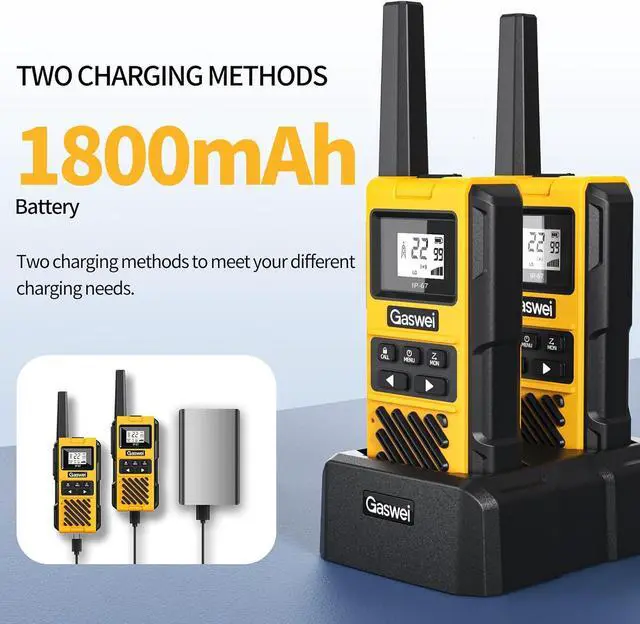 Rechargeable Walkie Talkies walkie talkies always focus on quality, built-in a high-capacity rechargeable lithium battery (real 1800mAh) which can have a normal use time of 12-24 hours (power consumption depends on high frequen/low frequen and volume), and the standby time can have a 100 hours.