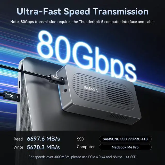 Up to 8TB Large Storage ExpansionIt supports NVMe M. 2 SSDs in 2230, 2242, 2260, and 2280 form factors, with storage capacities up to 8TBproviding ample space for all your les and applications.