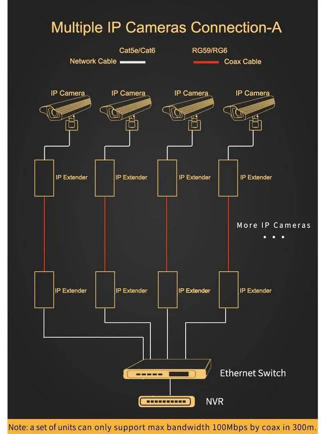 Note: support transmitting IP camera over coax cae for monitoring system and home network setting.