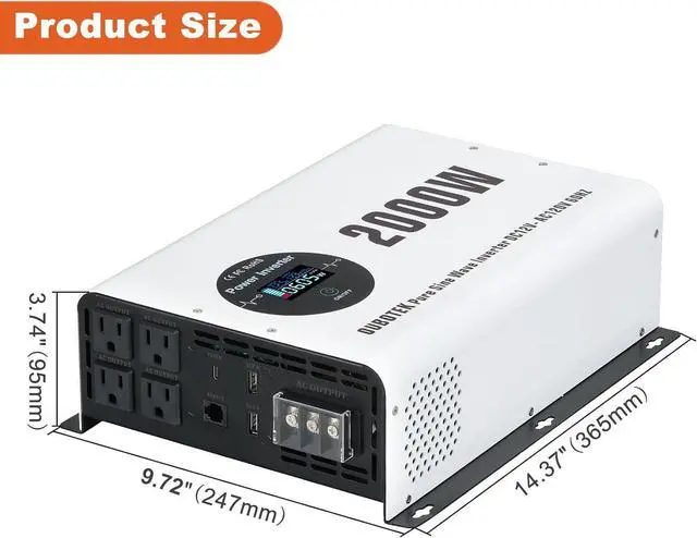 User-Friendly Dgn: The Power Inverter 2000W is easy to use, featuring 4 AC outlets, 1 AC hardwire terminal, 2 USB-A QC 3.0 quick charging ports, 1 USB-C PD30W. Power sensitive vehicle electronics and appliances such as laptops, smartphones, TVs, power tools, toaster, coffee maker, microwave oven etc.