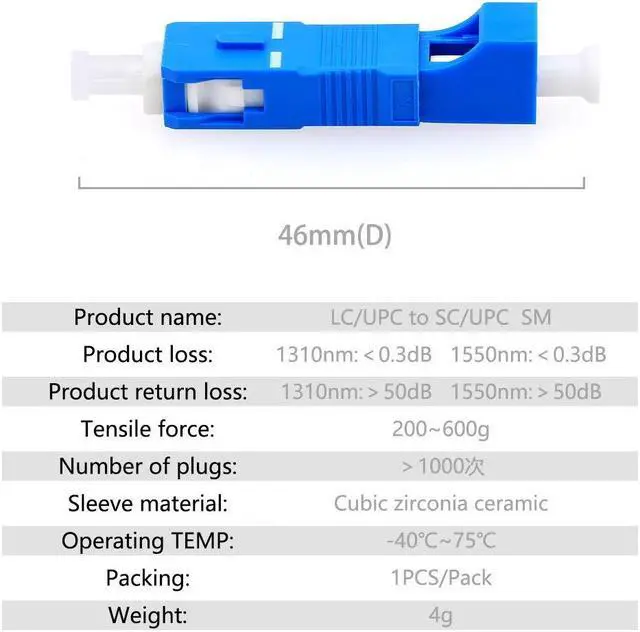 SC male to LC female PC UPC SM Singlemode fiber optic adapter is fiber-embedded adapter connector Widely apply on FTTH VFL Visual Fault Locator, Optical Power Meter, Fiber Optic Instrument test interface conversion, used for the splicing and coupling between fiber optical cae wire.