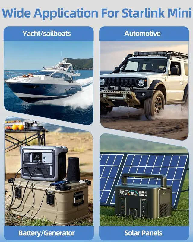 Corehensive Safety ProtectionFeatures builtin overvoltage, undervoltage, shortcircuit, and overteerature safeguards to protect your Starlink Mini and connected electronics from power fluctuations when using car batteries, solar panels, RV power banks, or offgrid systems, ensuring stae and reliae internet anywhere.