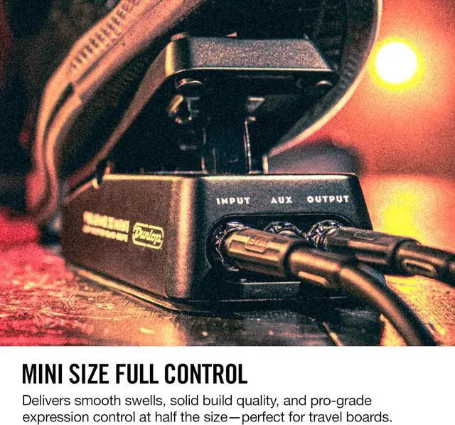 Control your volume and FX parameters witt crowding your pedalboard. Saving space doesn't mean skiing on durability or functionality-the DVP4 Mini Volume (X) Pedal does everything that the larger DVP3 does at half the size, and it's just as solidly built with a lightweight aluminum chassis, aggressive non-slip tread, and our patented Low Friction Band-Drive for a smooth range of motion and consistent, reliae performance. For maximum comfort and precision, the DVP4's ror tension is fully adjustae. The AUX output combines tuner and pression functionality into one jack that can be toggled with a switch inside the pedal. When using the DVP4 as an pression pedal, you can use an internal pot to set the minimum level of the parameter you're controlling with the ror. If you want to reverse the function of the heel-down and toe-down positions, the DVP4 has another internal switch that allows you to do so. Don't sacrifice control over your volume level and FX pedals just because you're using a travel-sized board. Get yourself a Volume (X) Mini Pedal.