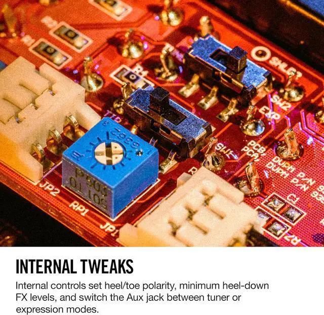 FINE TUNE IT TO YOUR RIG: Internal controls set heel/toe polarity, minimum heel-down FX levels, and switch the Aux jack between tuner or pression modes.