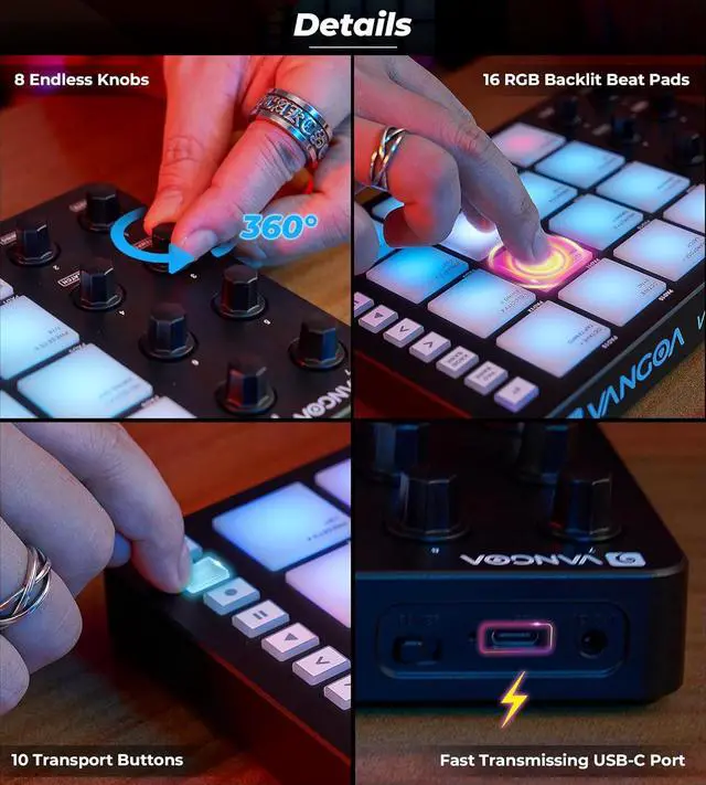 Unleash Your Potential Anywhere, Anytime- 1 year satisfactory service. With 8 knobs for on-the-fly tweaking and a rechargeae dgn for ultimate portability, the midi drum pad is your tit to musical freedom. Whether you're in the studio or on the move, this versatile drum machine beat maker for music making eowers you to create, innovate, and press yourself like never before.