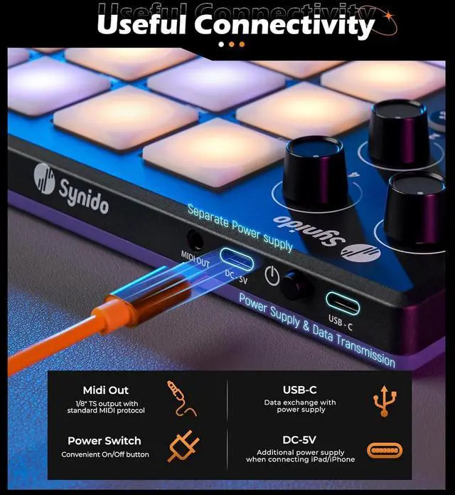 Portae Creative Coanion This Midi pad beat maker has cellent portability, catering to on-the-go musicians, all-level creators, capturing ideas anytime anywhere. The rubberized bottom offers stability and a comfortae grip, ensuring it stays in place when you craft amazing ideas, while the included data cae's usae length, bright color enhance overall convenience