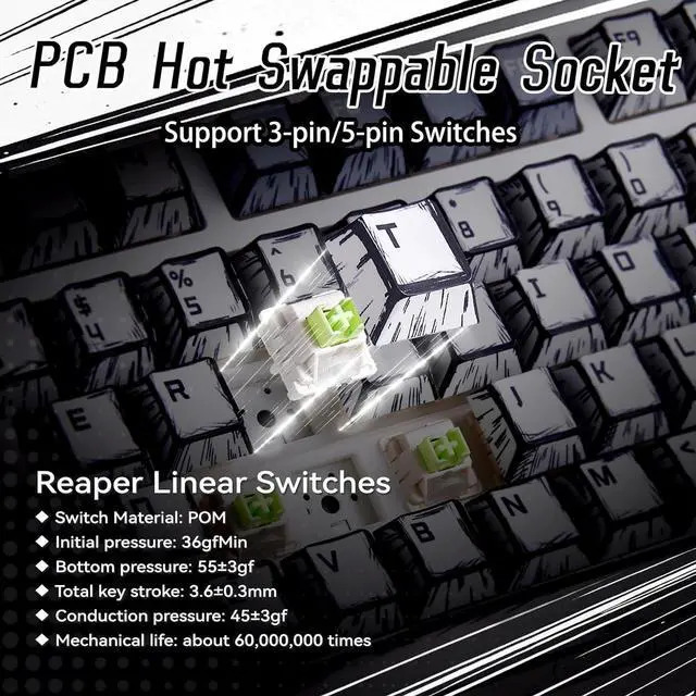 Doue-Shot PBT Manga Keycaps: The F75 takes durability to the nt level with its Cherry-profile doue-shot PBT manga keycaps, ensuring a perfect end of robustness and stylish dgn. These keycaps stand rlient against wear, maintaining a sleek appearance