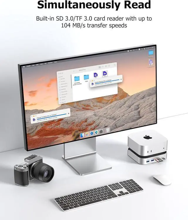 [Simultaneous SD/TF Card Reader 104MB/s Transfer Speed] Transfer files efficiently with the dual-slot SD/TF card reader, supporting simultaneous reading and writing at 104MB/s, perfect for high-resolution media handling and rapid file transfers.
