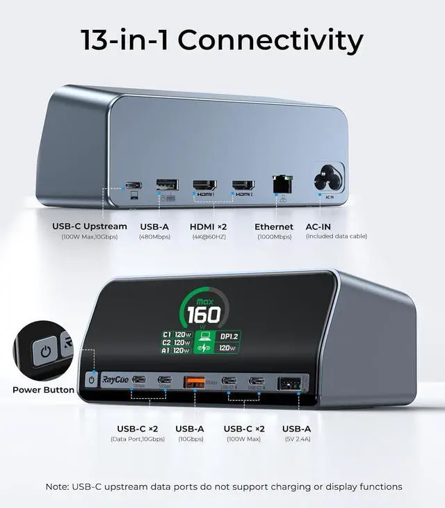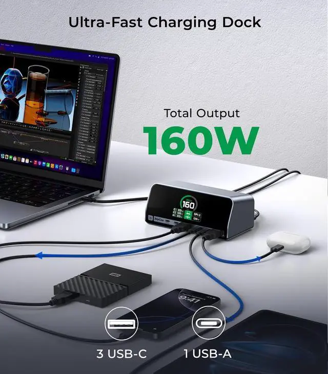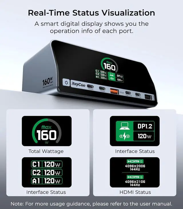 Smart Screen Display &a; Screen-lock ButtonView real-time updates on charging power, display performance, the connection status of each port. Use the screen-lock button to secure sensitive information whenever needed