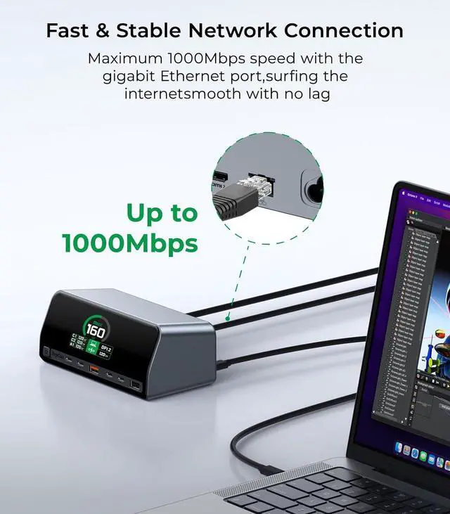 10Gbps Ultra-Fast Data &a; Gigabit EthernetThis usb c docking station achieves up to 10Gbps data transmission speed with its USB 3.2 Gen 2 ports (2 USB-C and 1 USB-A), enaing you to transfer 20GB files in just 20 seconds. Laptop docking station ensures a fast and secure transfer perience. This powerd docking station 1000Mbps ethernet port download movies quickly and reduce game lag