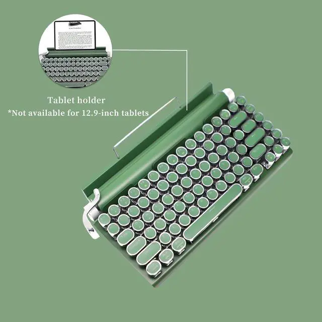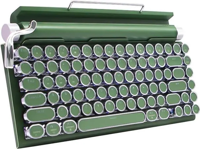 Featuring classic punk-inspired keycaps handcrafted from two assemed parts, this keyboard showcases a stylish mint green aluminum panel that adds a fresh, fashionae touch to the vintage typewriter dgn. With uetooth 5.0, it offers faster and more stae connections, supporting both wired and wireless modes, and allows easy switching between phones, taets, and laptops. The hot-swappae ue mechanical switches provide a customizae, tactile typing perience. Delicate and charming, the mint green color is perfect for those who love stylish and coact accessoriesmaking it an ideal gift for trendy and tghtful users