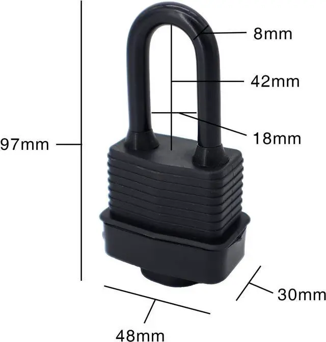 FEATURES: Heavy duty covered laminated steel padlock, 1-9/16 inch wide body