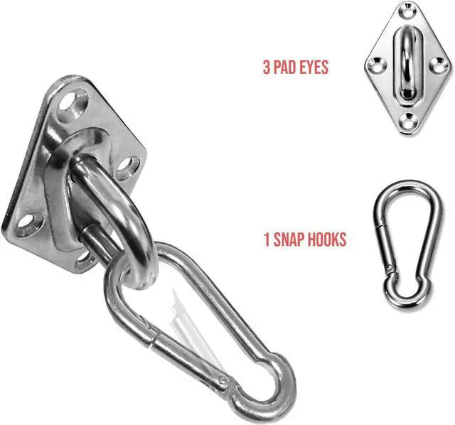 PACKAGE INCLUDED - Carbineer/Hook x 2, Turnbuckle x 2, Diamond Pad Eye x 4, Matching Screw x 16.