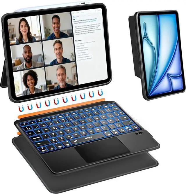 No Lag: iPad magic keyboard just 0.25 inch ultra-thin dgn. The foldae stand adjusts from 0°to 170°, fill needs for different angles. uetooth 5.3 ensures instant, no lag pairing and stae connectivity. Easily switch to work mode during commutes or in cafes