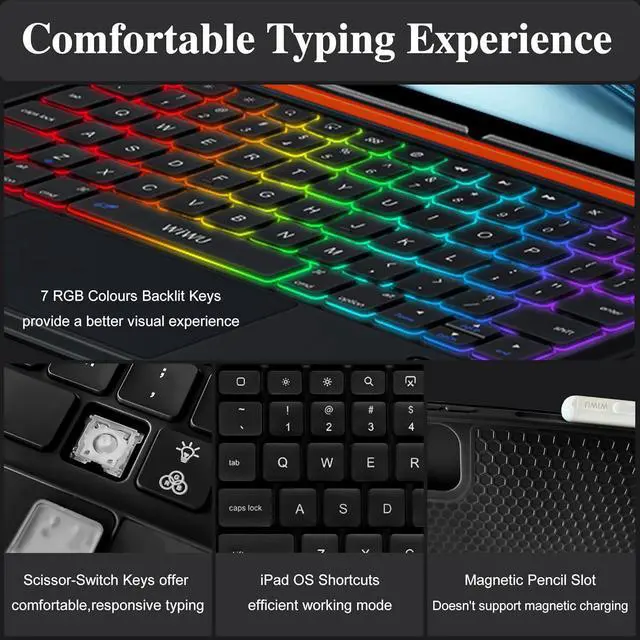 iPad OS Shortcuts: Smart multi-touch trackpad supports 18 intuitive gestures controls and palm rejection for browse, clicking and app switching. Multimedia shortcuts doue efficiency such as quick screenshot, return to desktop and more. Elevate your to edit documents, browse the web and build presentations