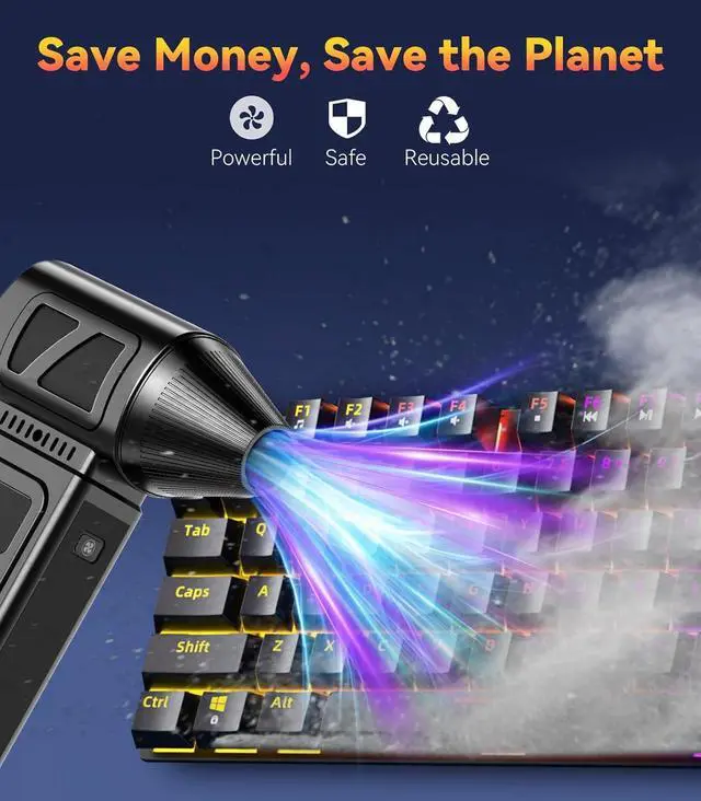 How to useStep1: Long press the coressed air duster power button for 3 seconds to turn on the device;