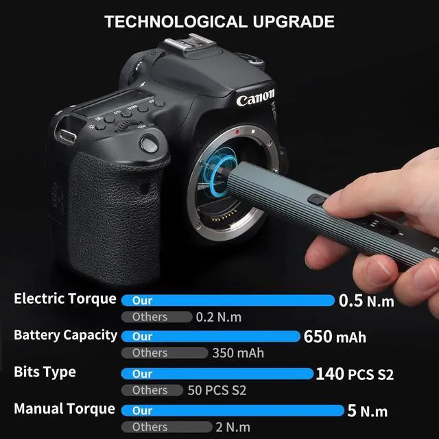 User-Friendly Dgn: This lightweight, pen-style cordless screwdriver features a non-slip grip and responsive touch buttons for comfortae use. Easily adjust the torque with a sile push-button. The rechargeae screwdriver comes with a robust, magnetic case where each accessory is securely stored and labeled for quick access, allowing you to store, protect, and carry the electric screwdriver like a professional technician