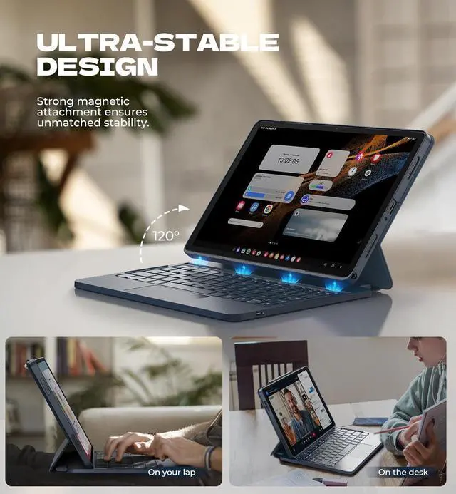 [Rock-solid Magnetic Support] With strong magnets embedded in the slot, the PC case with taet inserted in will be securely and firmly attached to the keyboard case, providing a rock-solid support on your desk and even on your lap. The ergonomic 120 degree viewing angle ensures a maximum comfort for study, work and entertainment.
