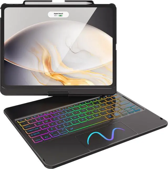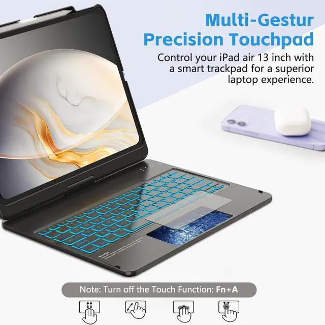 Full Protection & Precise Cutouts: This Touch for ipad air 13 inch case keyboard features a premium smart hard shell keyboard that protects all sides of the taet. Auto sleep/wake initiates when keyboard case is opened & closed to conserve battery life; holder for Pencil so it won't get lost or in the way