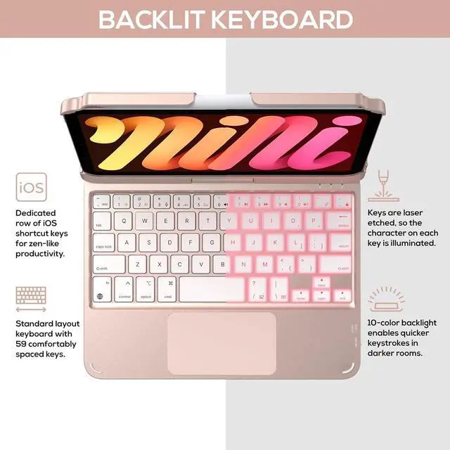 Precision Trackpad - Scroll, swipe on the multi-touch trackpad, navigate your iPad Mini 6th gen in a whole new way, edit documents, browse the web, and manage files at an unparalleled speed, letting you feel the convenience of high efficiency.