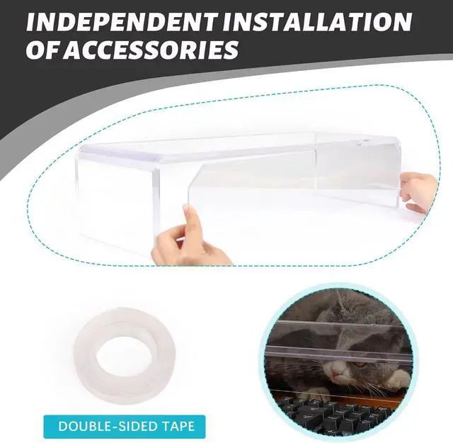 large size20long x 7Width x 4.7 high. 0.4 thick- this is large enough to cover each of them with enough room for keyboard. It's high enough allows boys with large palms to type witt any hindrance. that you can use the keyboard easily. It's thick so it can take the weight of you chonky adult cats easily. Coared with glass, the sturdy and drop-proof acrylic material makes it safer.
