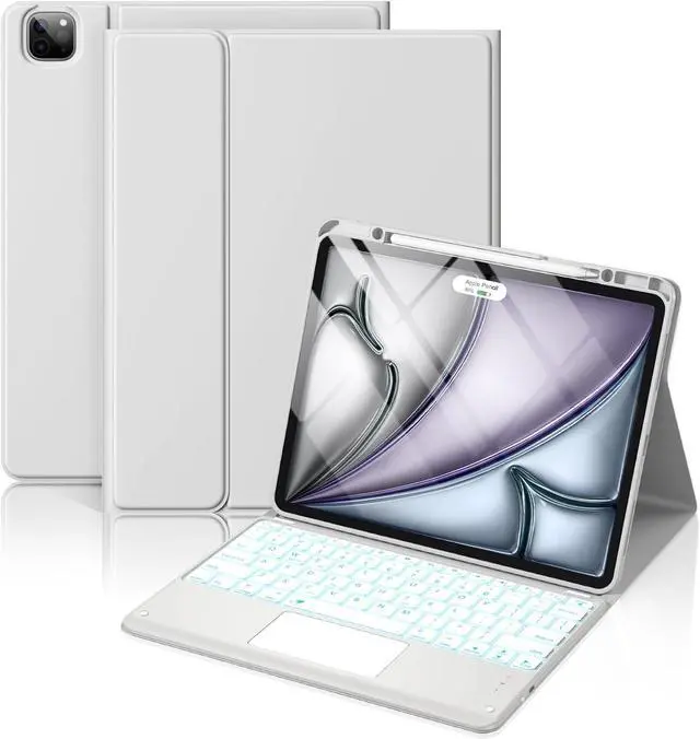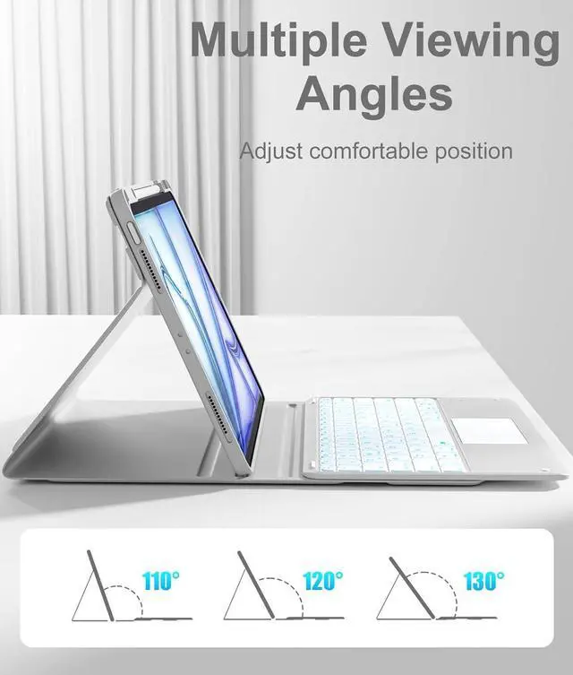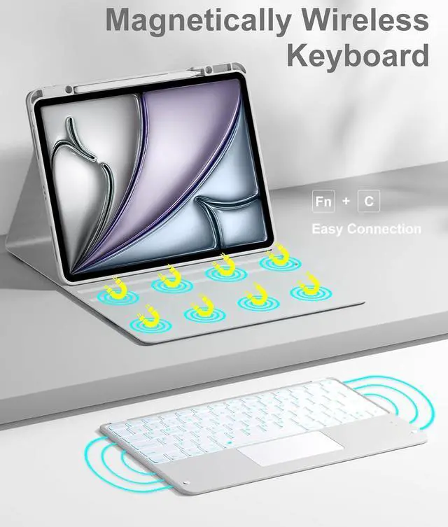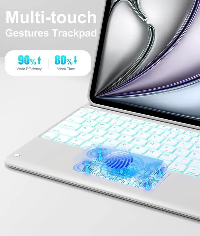 Multi-Touch Gestures Trackpad: This for iPad Air 13 inch case with keyboard integrated multi-functional touchpad. Use a trackpad for precision tasks, like editing a spreadsheet, browsing the web, and managing applications. Scroll, swipe, and zoom effortlessly, do not need a mouse. The responsive and intuitive trackpad enhances your efficiency