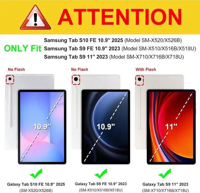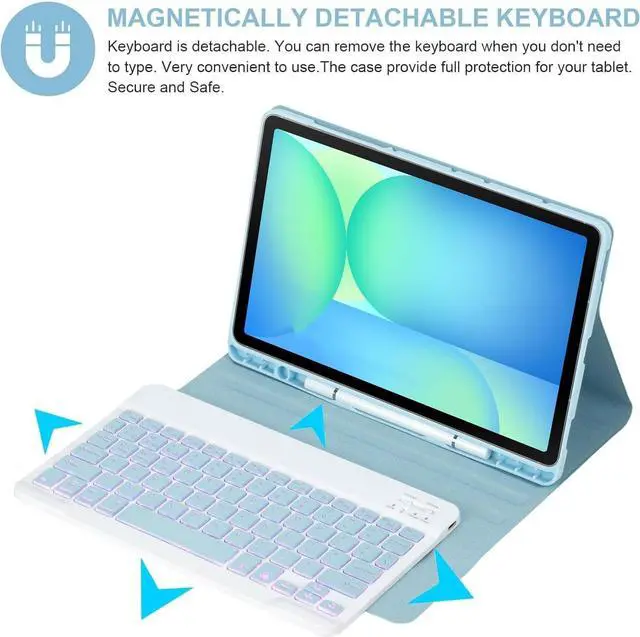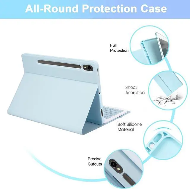 Corehensive Protection Coverperience enhanced drop protection with a premium PU leather terior and a soft TPU inner back, for Galaxy Tab S10 Lite/S10 FE/S9 FE 10.9 ''/Galaxy Tab S9 11'' Keyboard case built-in pen slot ensures your S Pen is stored securely, making it easy to carry and access your pen whenever you need it
