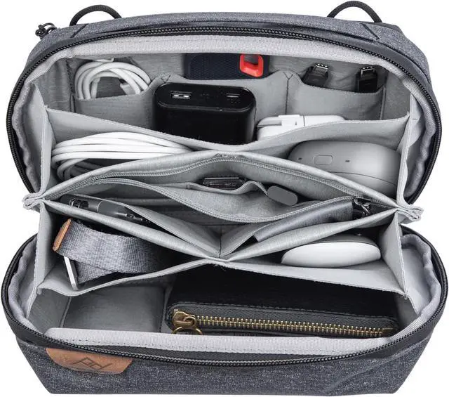 Tech Pouch Whether storing caes, everyday gear, or travel essentials, the Tech Pouch offers unrivaled organization and ease of access. It features origami-style pots that enhance spatial efficiency, while elastic loops conveniently hold items like pens, knives, SD cards, and batteries.