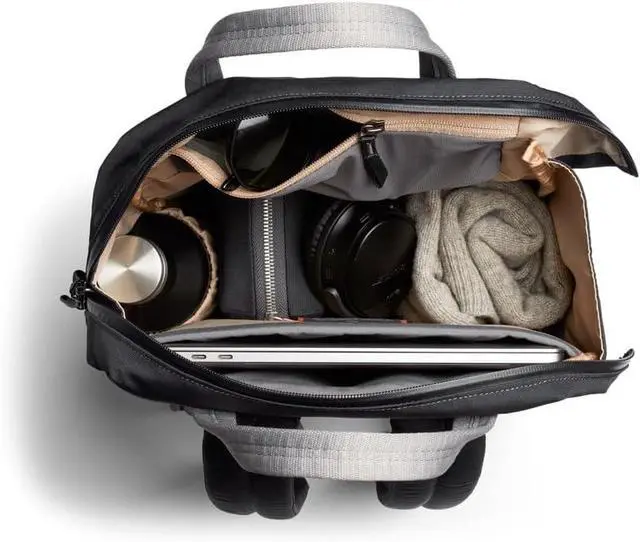 Can be worn as a slim commuter backpack, or carried in-hand as a tote work bag; also features a trolley/luggage pass-through