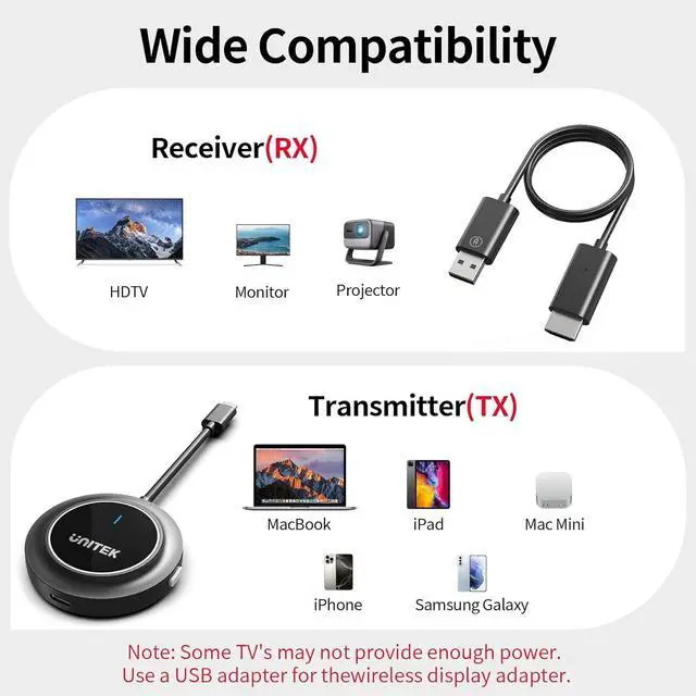 zero transmission restrictions: Our display wireless adapter uses 1 to 1 automatic matching technology, witt the need for intermediate protocol switching, to achieve direct device connection. Not only does it coletely get rid of various encryption restrictions, it also ensures that the receiving end image is synchronized with the transmitting end in real time and is coletely consistent, making the transmission efficient and stae