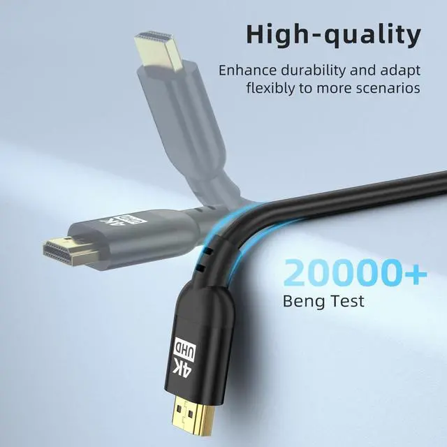 [Lag-Free 4K for Home Theaters &a; Professional Install Grade]Engineered for long-distance home theater setups, this military-grade PVC HDMI cae withstands kinks, tangles, and abrasion during in-wall installation through attics/conduits. Doue-layer EMI shielding (aluminum foil + copper braid) eliminates signal interference from routers/appliances, ensuring 4K/120Hz transmission in media rooms or commercial AV systems. Gold-plated connectors with 3-point strain relief survive accidental tugs, delivering reliae 8K-ready performance year after year.