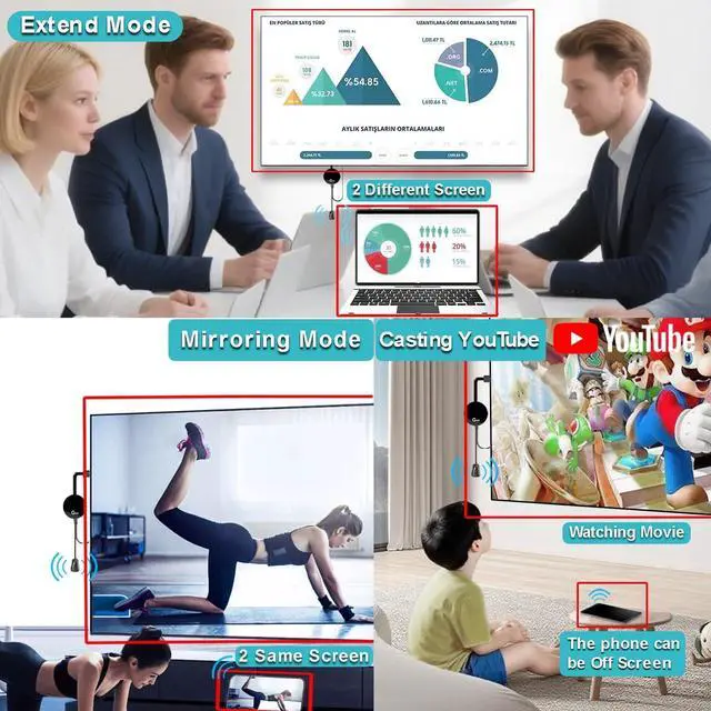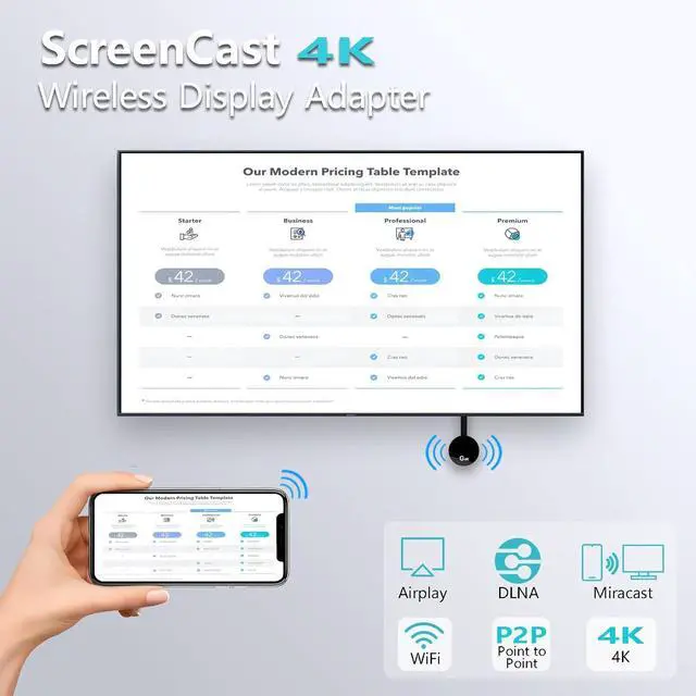 4K UHD Quality + Stae, Low-Latency TransmissionBuilt with a high-performance chip, it delivers 4K decoding and stunning 4K output (backwards coatie with 1080P). The 2.4G /5G dual-band ensures ultra-stae, high-speed streaming with minimal latency, keeping your presentations smooth, movies lag-free, and video calls uninterrupted.