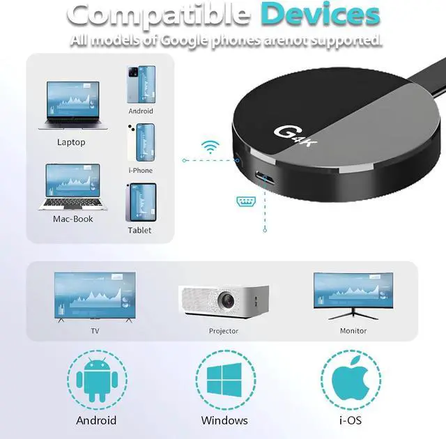 Wide Coatibility Across Devices & SystemsWorks seamlessly with iOS (i-Phone/i-Pad), M-acOS, Android, and Windows devices. Coatie with smartphones, taets, laptops, cameras, and moreGoogle phones are not supported. ideal for conference rooms, home theaters, and multimedia education.