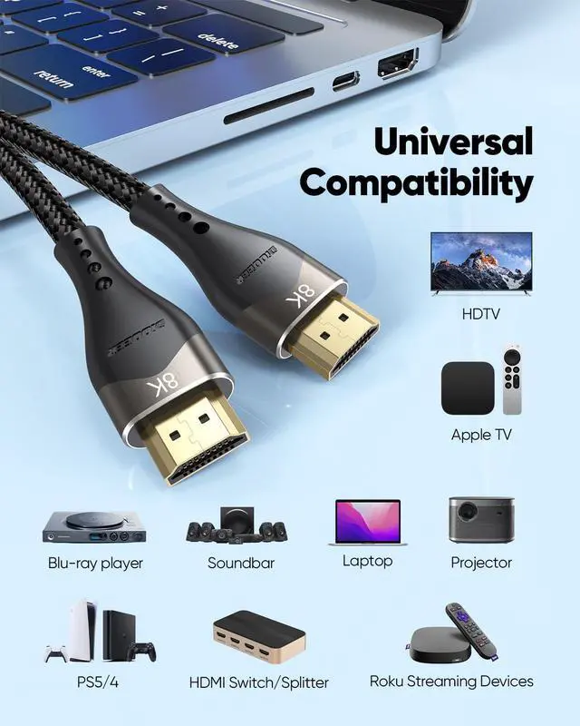 Coatie HDMI DevicePlug and play. Support Mirror &a; tend mode. This 10 foot long HDMI cae coatie with PS5/PS4/PS3, Couter, Laptop, Monitor, Projector, HDTV, u-ray Player, Roku, X, Switch, and more HDMI port devices. Also, backward coatie with HDMI 2.0 b/ 2.0 a/ 1.4 / 1.3 / 1.2 / 1.1 versions.