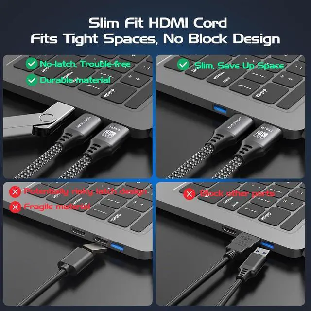 Universal CoatibilityWorks seamlessly with KVM, Fire TV Stick, PS5, X, LG, Roku, Switch, Portae Monitor (HDMI Port), TV and more. Rigorously tested for flawless 8K/4K streaming and gaming. *Note: While our cae supports 8K@60Hz &a; 4K@144Hz/120Hz, actual display depends on your device.