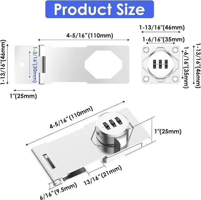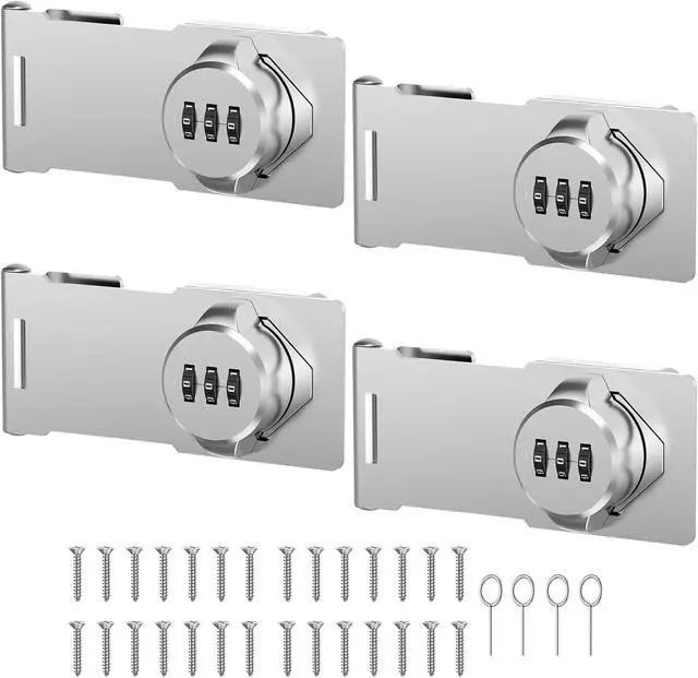 4 Packs Mechanical Password Rotary Hasp Locks, Cabinet Locks with Combination, Door Security Gate Locks for Small Doors, Cabinets, Barn Door, Bathroom, Outdoor, Closet, Fence