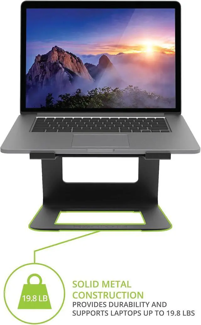 NON-SLIP SILICONE - The LE1 universal laptop riser features high-grip silicone on the laptop platform and base. Keep your laptop secure and enjoy peace of mind while you work.