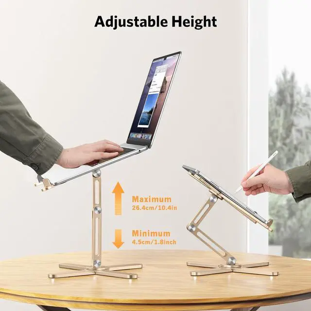 Heat Dissipation: The X-shape laptop riser provides good ventilation and airflow to prevent your laptop from overheating. It is made of 100% aluminium alloy, which can help dissipate heat to cool down your laptop