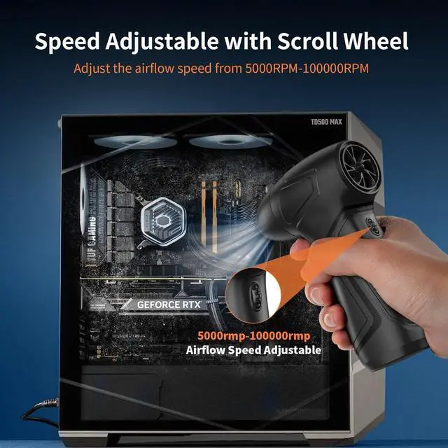 Reusae & Energy-Saving - Unlike disposae coressed air cans, the rechargeae ower can not only save your money, but also reduces waste to protect the environment. It eliminates the hassle of manual pressing or control issues, with adjustae scroll wheel to adjust the airflow levels for precise cleaning. No liquid or ice is emitted, ensuring safe use on sensitive devices.