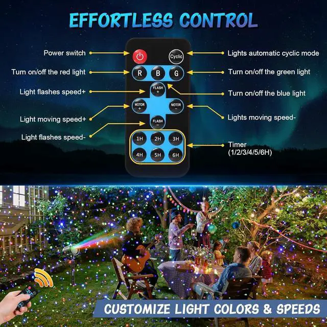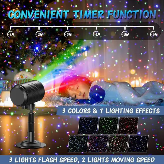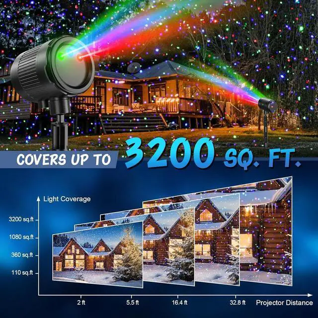 Perfect for Any Festive Occasion: This outdoor Chrias projector effortlessly brings the holiday spirit to your home or garden. Perfect for both indoor and outdoor use, this laser lights projector is ideal for various celebrations. Use it to decorate gardens, homes, and indoor/outdoor spaces, bringing a festive atmosphere to Halloween, Chrias, New Year, birthday parties, family gatherings, and more. Its captivating light show transforms any setting into a vibrant and joyous environment