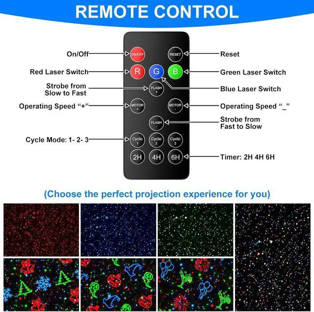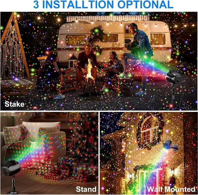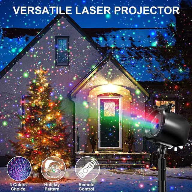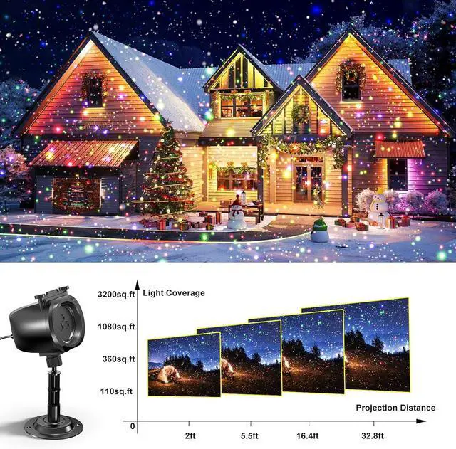 Outdoor Waterproof Projector Lights: No matter the season, this IP65 waterproof laser projector light stands strong against rain, snow, or azing sun. Covering up to 3200 square feet from 16.7 ft feet away, it casts enchanting firefly lights on your garden, home, or any indoor/outdoor area, making every season magical.