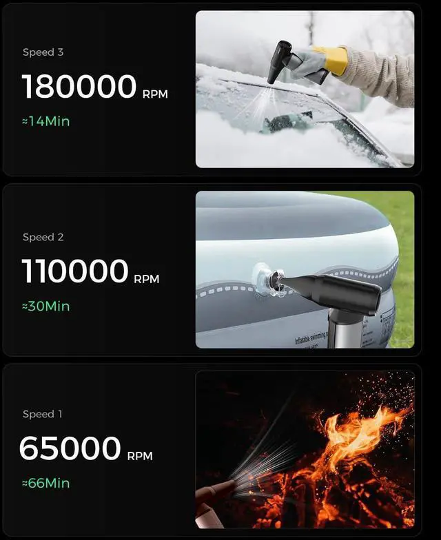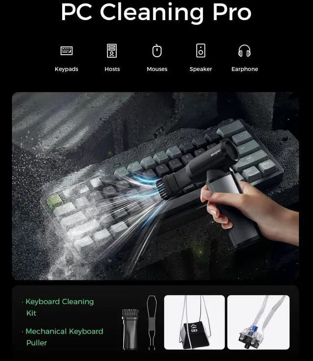 Multi-Functional with Colete AccessoriesThis electric air duster comes with everything you need: 3 nozzles, 3 brushes, a mechanical keyboard cla, and a storage bag. The mechanical keyboard cla is perfect for removing keycaps and switches, making deep cleaning a breeze. Use it for PCs, keyboards, cars, caing, inflating air mattresses, or even starting a cafire! Its the ultimate tool for home, office, and outdoor adventures.
