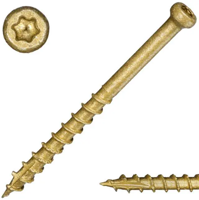 AVOID CAM-OUT: The star-drive dgn of these coated terior deck screws maximizes torque &a; reduces cam-out, protects the fastener &a; bit