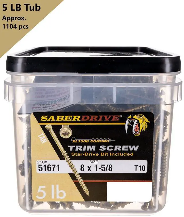 Tan XL1500 Trim Screws, 5lb, Approx. 694 Pieces - #8 x 2-1/2" Durae Secure Serrated Thread Trim Screws, Fasteners for Trim, Roofing, Construction, Repair