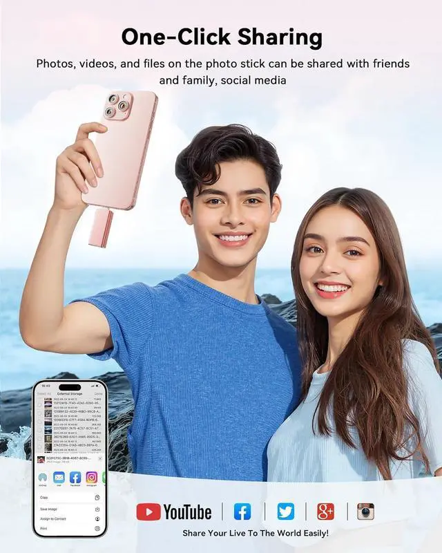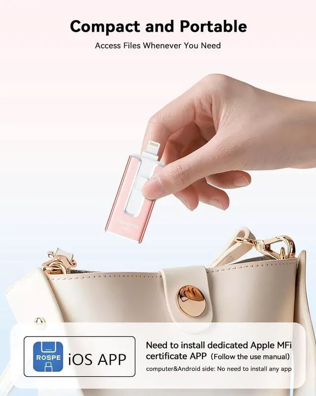 Portae, Stylish, and SecureCoact and lightweight, this encrypted iPhone flash drive is availae in pink and ue. Use the app to set a password and keep your personal files safe, which make the photo stick offering added security for your iortant data.