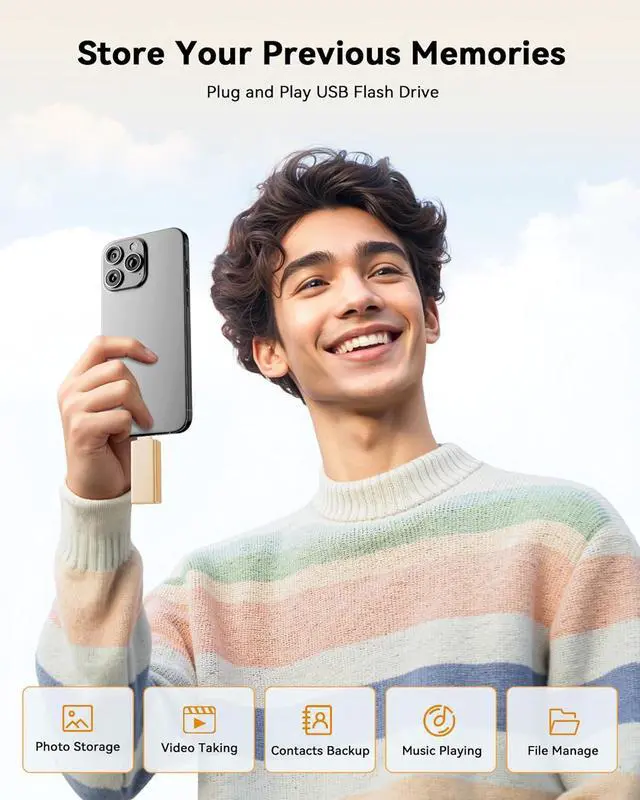 Portae, Stylish, and SecureCoact and lightweight, this encrypted iPhone flash drive is availae in pink and ue. Use the app to set a password and keep your personal files safe, which make the photo stick offering added security for your iortant data.
