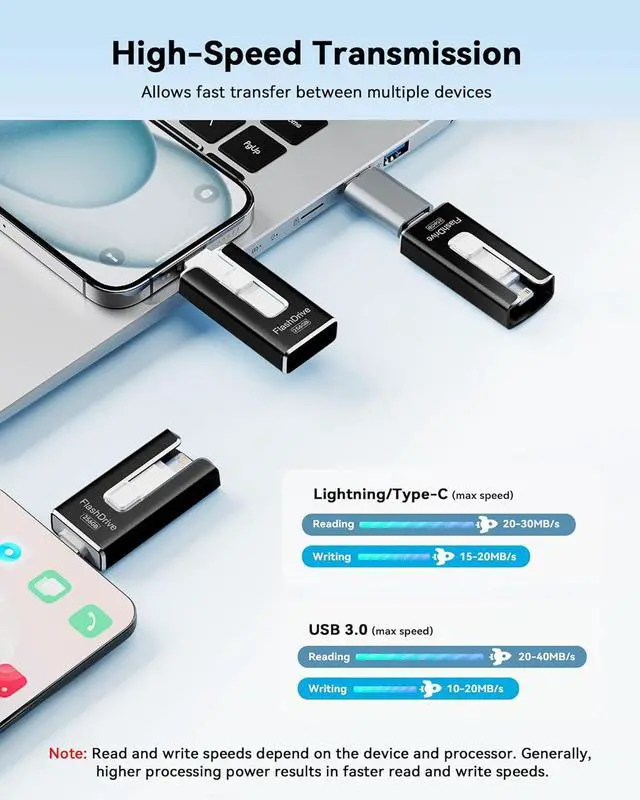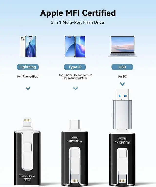 MFi Certified Flash Drive for iPhone, 3 in 1 Type-C USB Memory Stick Thumb Drive for Photos Videos, High Speed ternal Memory Storage Photo Stick for iPhone iPad Android PC