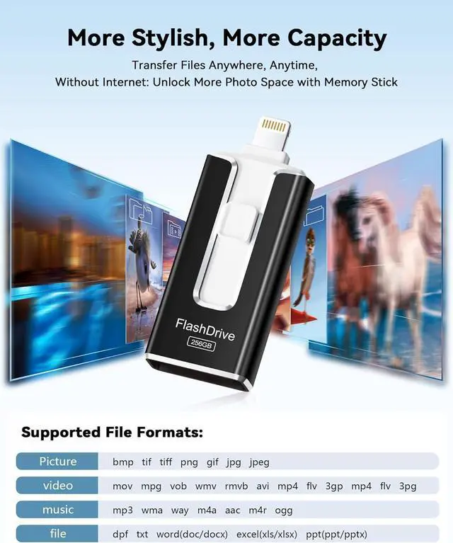 Portae, Stylish, and SecureCoact and lightweight, this encrypted iPhone flash drive is availae in pink and ue. Use the app to set a password and keep your personal files safe, which make the photo stick offering added security for your iortant data.