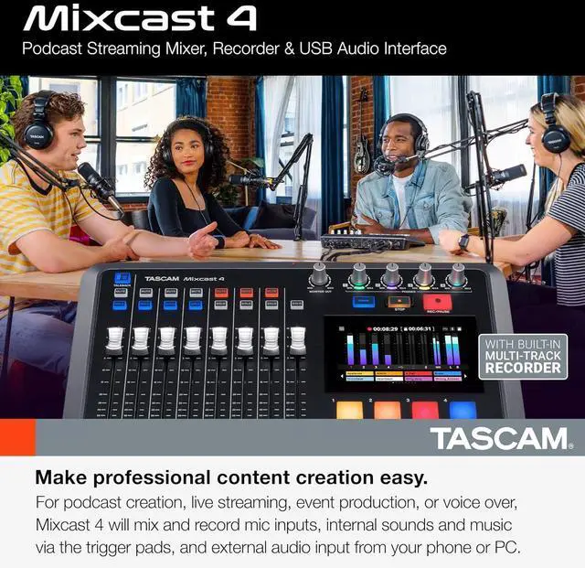 Stress-Free Touch Panel Control: Equipped with four mic inputs and four individual headphones outputs, the Mixcast 4 is always ready for podcast production witt colicated settings. It provides all audio-related operation and workflow needed for live-streaming, events, podcasts, and other applications